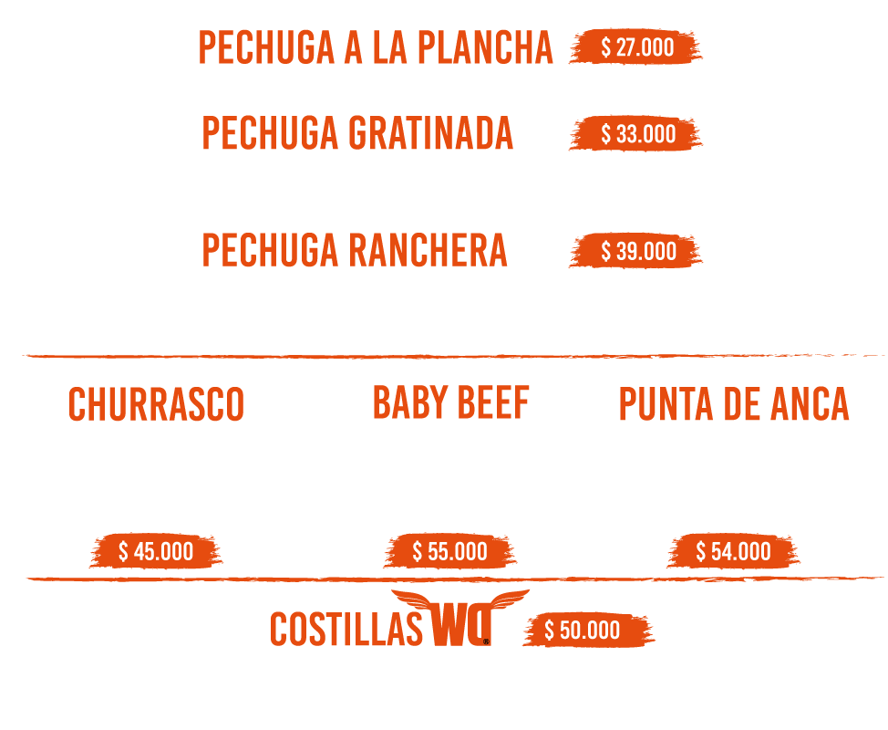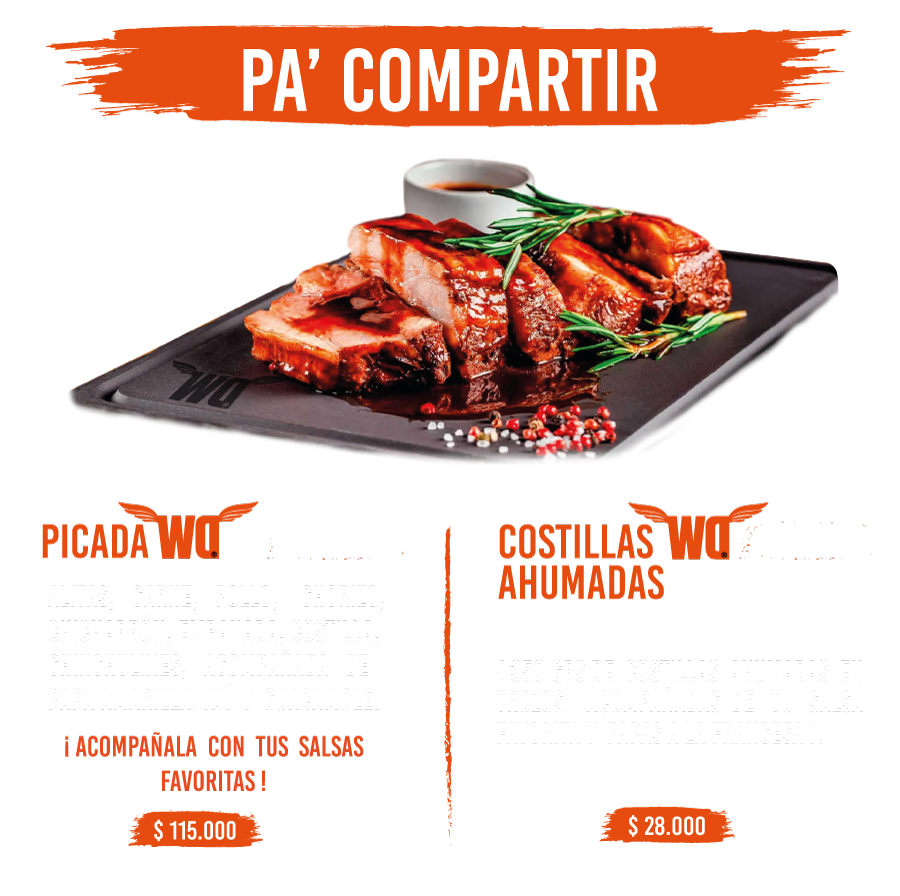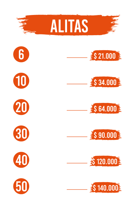 Todas las ordenes de Alas vienen acompañadas de vegetales frescos, papas francesas.
